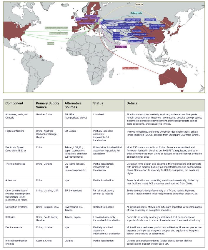 “At the beginning of 2024, nearly 90% of the total value of imported drone components came from China. By the first half of 2025, this share had dropped to about 38%, with most of the remainder sourced from European Union suppliers.” (Snake Island Institute report)