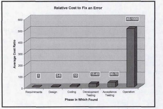 It is a standard heuristic in systems engineering that underinvesting early in a program in the requirements and engineering phases usually leads to defects and errors being caught later when they cost much more to fix as shown in Figure 6 below. This is the engineering corollary to the old medical saw “an ounce of prevention is worth a pound of cure.” Boeing would too often underinvest in up front systems engineering and make faulty assumptions about reuse from heritage programs based on the views of managers trying to meet cost numbers.