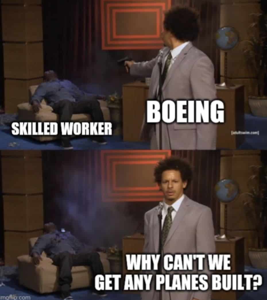 In the long run though these initiatives were a disaster. Boeing was doing everything possible to push it’s experienced top percentile engineering talent out the door while encouraging it’s oldest, most expensive and least productive employees to wait around in senior roles for “their package” all the while junior talent found itself unable to advance up the corporate ladder so sought greener pastures elsewhere (including, yours truly). Seriously, what could go wrong?